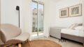 Die Wohnung verfügt über einen offenen Wohn-Essbereich, eine Küche, zwei Schlafzimmer und zwei Bäder jeweils mit Zugang zu einer Terrasse oder einem Balkon von beiden Schlafzimmern und Tageslicht in beiden Bädern.