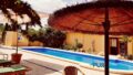 Der Außenbereich bietet mehrere, teilweise überdachte Sonnenterrassen sowie den geschützten Bereich rund um den Swimmingpool.