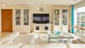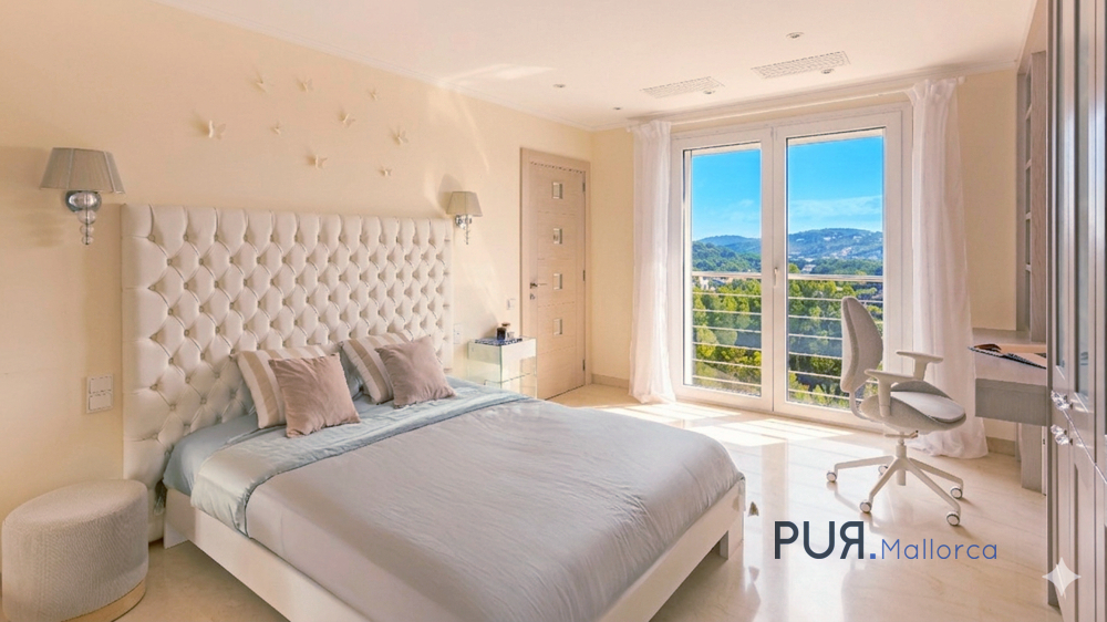 Es stehen drei Schlafzimmer mit Badezimmern und zwei Gästetoiletten zur Verfügung. Die offene Küche grenzt an den hellen Wohnbereich und verfügt über Meerblick.