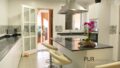 Hier befindet sich ein weiteres Wohnzimmer mit großen Fenstern, drei Doppelschlafzimmer und zwei moderne Dusch-Bäder, ein Esszimmer und eine große Küche mit Side-by-Side Kühlschrank und Granitarbeitsplatte, einem Küchen-Essplatz und Ausgang zur sonnigen Terrasse.