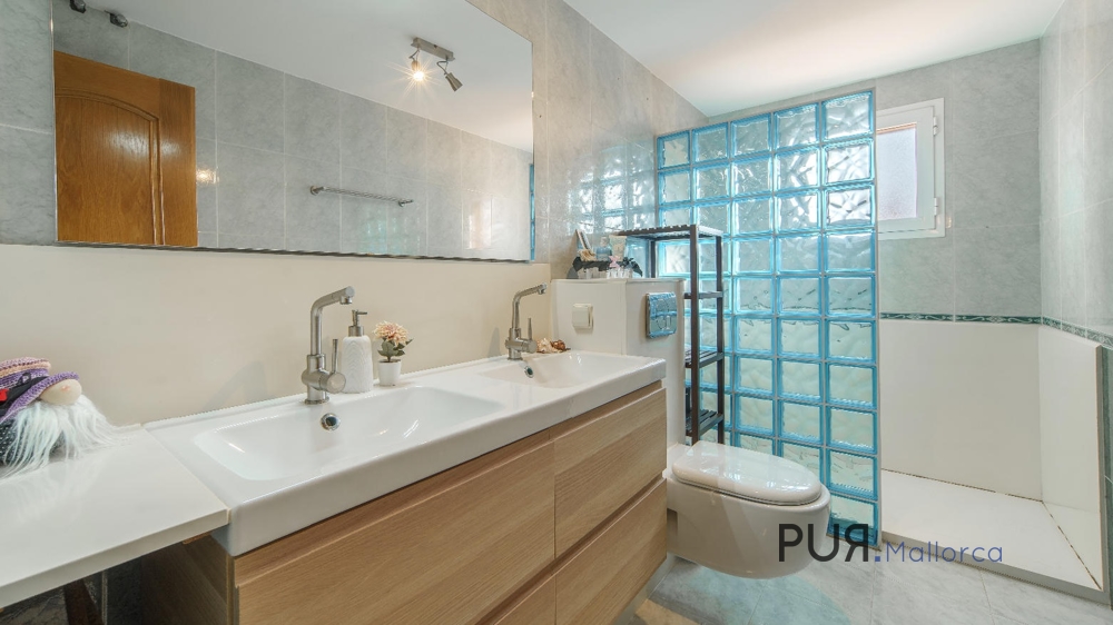 Die Erdgeschoss-Wohnung ist ausgestattet mit Klimaanlage, doppelt verglasten Fenstern, Metall-Rollläden sowie Parkett- und Fliesenböden.
