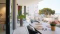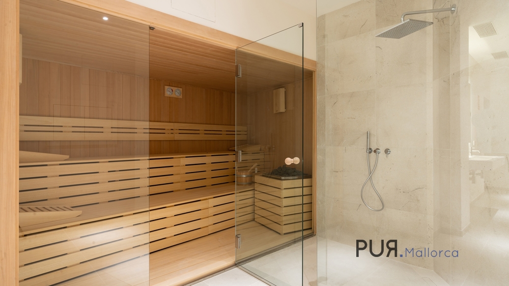 Die gemeinschaftliche Dachterrasse bietet einen Infinity-Pool und Meerblick ebenso wie ein Fitnessraum und eine Sauna.