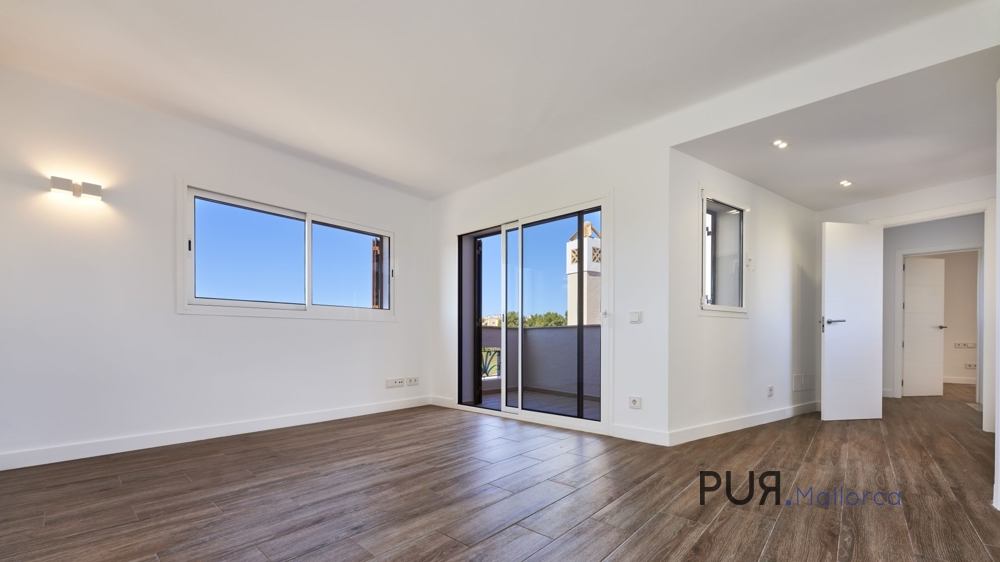Im Obergeschoss befinden sich zwei weitere Doppelschlafzimmer, jeweils mit eigenem Bad en suite, sowie eine sonnige Terrasse mit beeindruckendem Blick auf den Golfplatz.