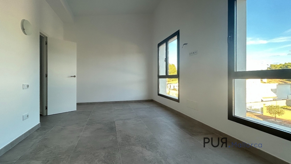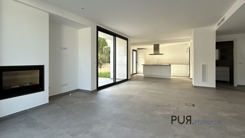 Das Erdgeschoss bietet den Wohnbereich mit Kamin mit Ventilator, offene Küche mit Kochinsel, ein Gäste-WC, Außen-Waschküche und einen kleinen Abstellraum unter der Treppe. In der ersten Etage befinden sich vier Schlafzimmer und drei Badezimmer.