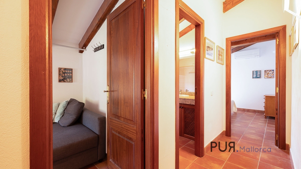 Im Außenbereich bietet die Finca Gärten mit Oliven- und Mandelbäumen, Sonnenterrassen und einen Swimmingpool.
