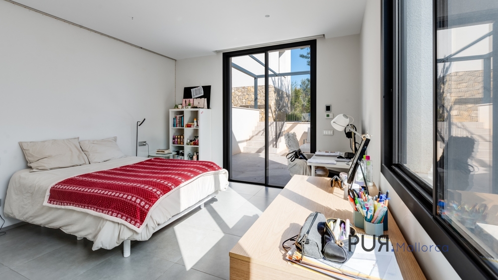 Das Obergeschoss bietet ein Hauptschlafzimmer und zwei weitere Zimmer, jeweils mit eigener Terrasse.